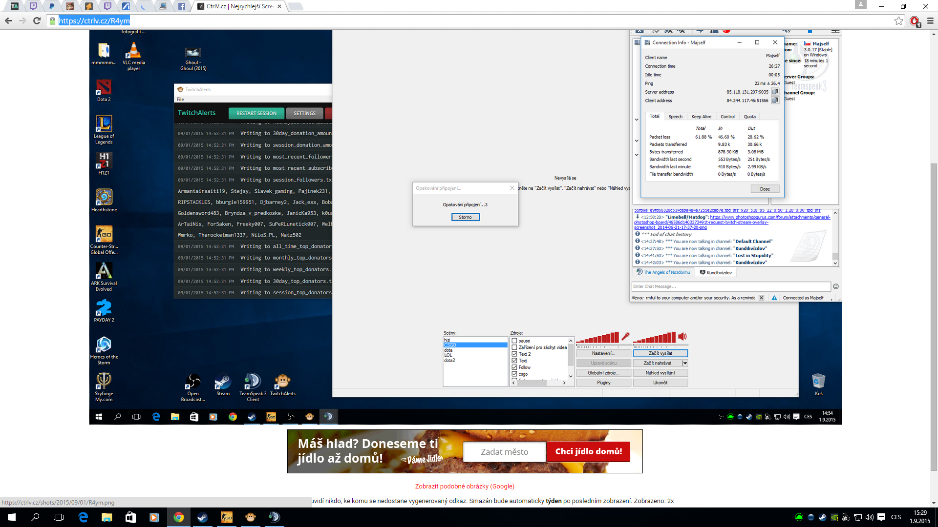 tady vidis ,ze sem zapl pouze obs csgo a mam 2O ping a 60%packet loss.. zkusim asi reklamovat desku.kupoval sem ji pred rokem..