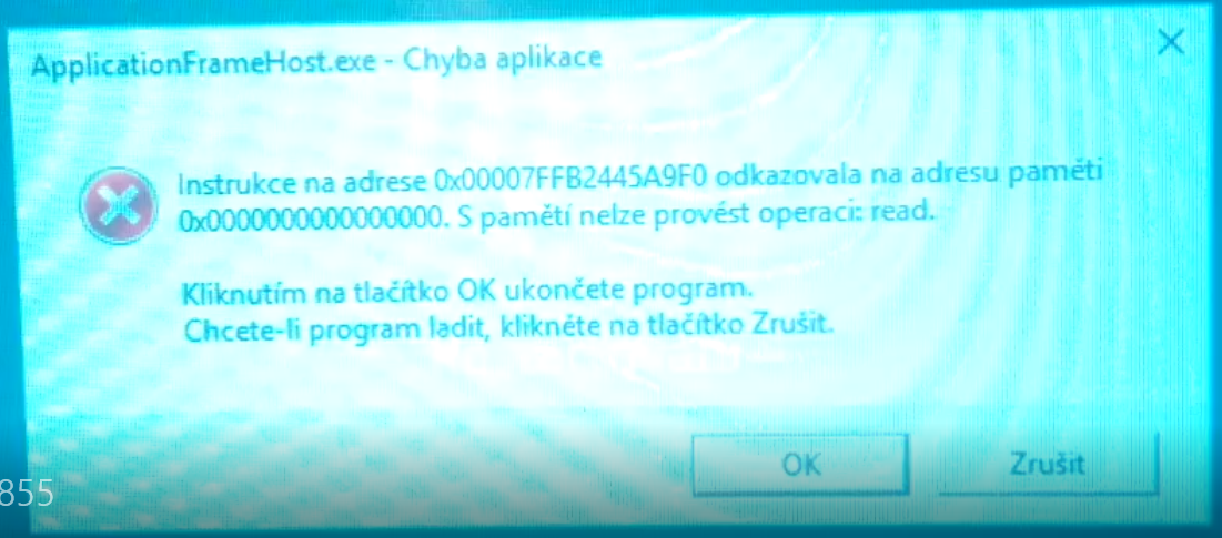 Jak pingovat z NASky nevím. Běží na Linuxu a netuším, zda to má povolené, i když přístup z netu je, právě kvůli kamerám. Ale zda to jde i opačné to netuším. Nastavoval to jeden brachův kamarád. Net funguje i po záseku. Jelikož používám wifi na mobilu. Část bytu pokrývá wifi přímo v modemu a druhou přes acces point pomocí wifi karty přes PC. Takže problém je nejspíš přímo někde ve Windows. Navíc jsem si všimnul, že při restartu tam problikne chybové hlášení. Jen to problikne na zlomek vteřiny. Tak jsem to natočil mobilem a udělal screenshot. Nevím, zda to má nějaký vliv na můj problém.