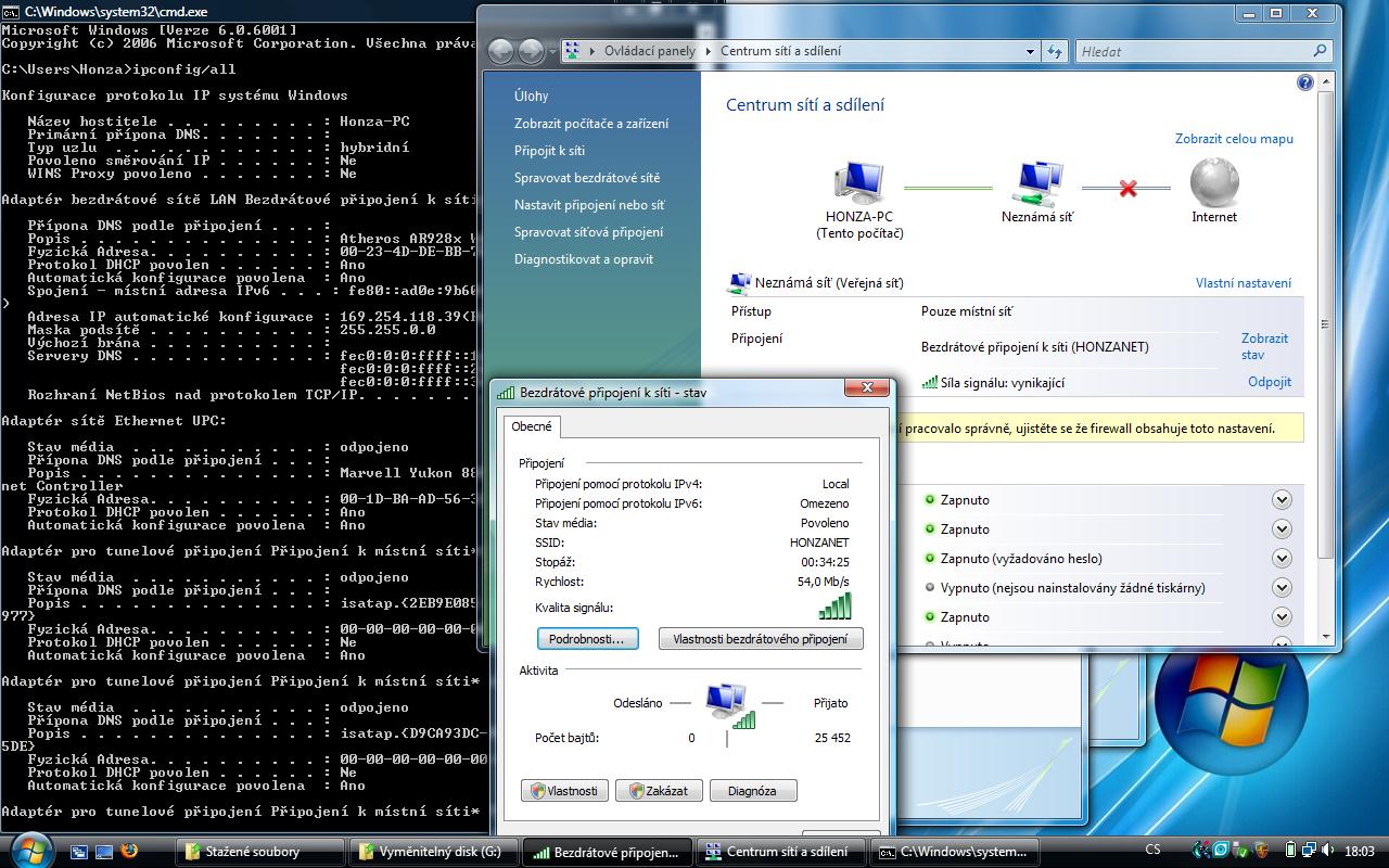 Ahoj doslova přes noc mně přestalo fungovat wifi ve Vistách na jednom s noteboků (mám za routerem: 1 stolní PC s XP, 1netbook s XP a 1 notebook s Vistama). Původně jsem měl za to, že je problém v routeru, ale na tom druhém NB vše funguje jak má. Včera to ještě slo úplně bez problémů a dnes .... NB sice síť vidí v seznamu dostupných sítí, ale po připojení omezí pouze na vnitřní síť a nepřipojí se do internetu/případně se nepřipojí ani do té vnitřní sítě.