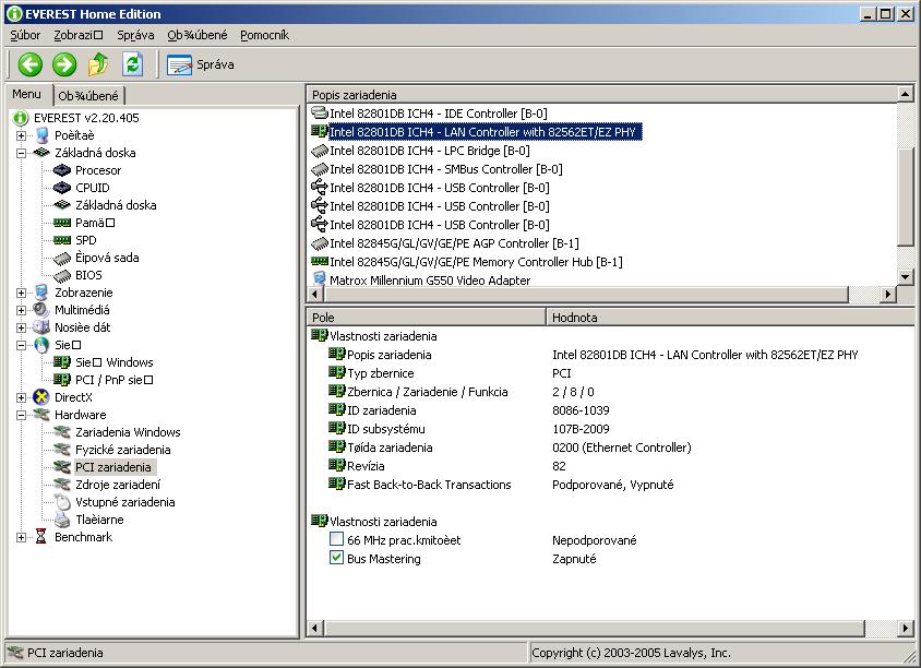 Jak jde videt z tohoto meho ranniho prispevku, tak z everestu vypadla takto definovana sitovka intel 82801db ich4 lan controller with 82562et/ez phy a podle toho jsem vyhledal ovladac, viz predchozi prispevek, takze vecer tam zkusim tento driver nahrat a uvidime...