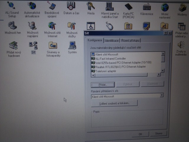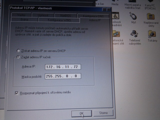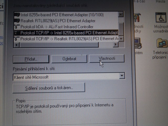 Nastaveni site je v ovladacich panelech, u sitoveho adapteru, vlastnosti