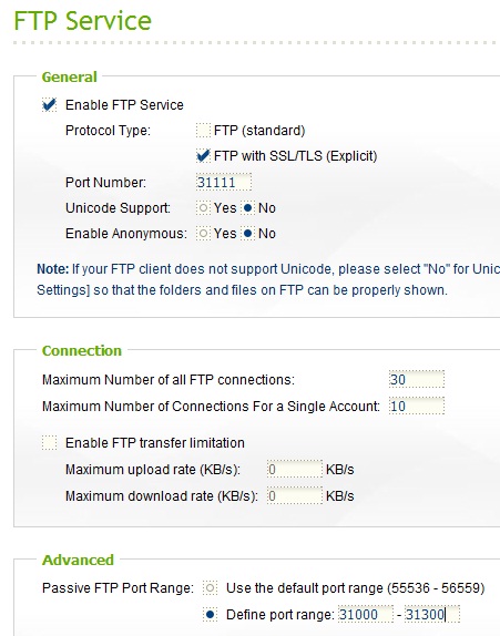 Můj nas umí to, že má ftp např. na 12345, ale data jdou na 54321 - 55321.