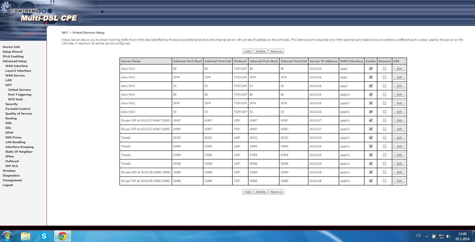 Tak už jsem to udělal sám... Než jsem to dělal tak jsem to neměl vůbec nic, potom jsem teda přidal xbox link1,2 a 3. Spustil jsem hru Saints Row 3 (kde to házelo chybu s tím NAT nastavením, že se to nemusí připojit na nějakou CO-OP hru, nebo jí to nemusí ani vyhledat). Po hraní jsem se kouknul znovu na počítači na správu routeru s těma virtualníma NAT serverama a objevili se tam další servery krom toho xbox link1,2 a 3 (viz. příloha). Nevíte co to je a jestli se na mě nenapojil nějaký hacker nebo něco?:D