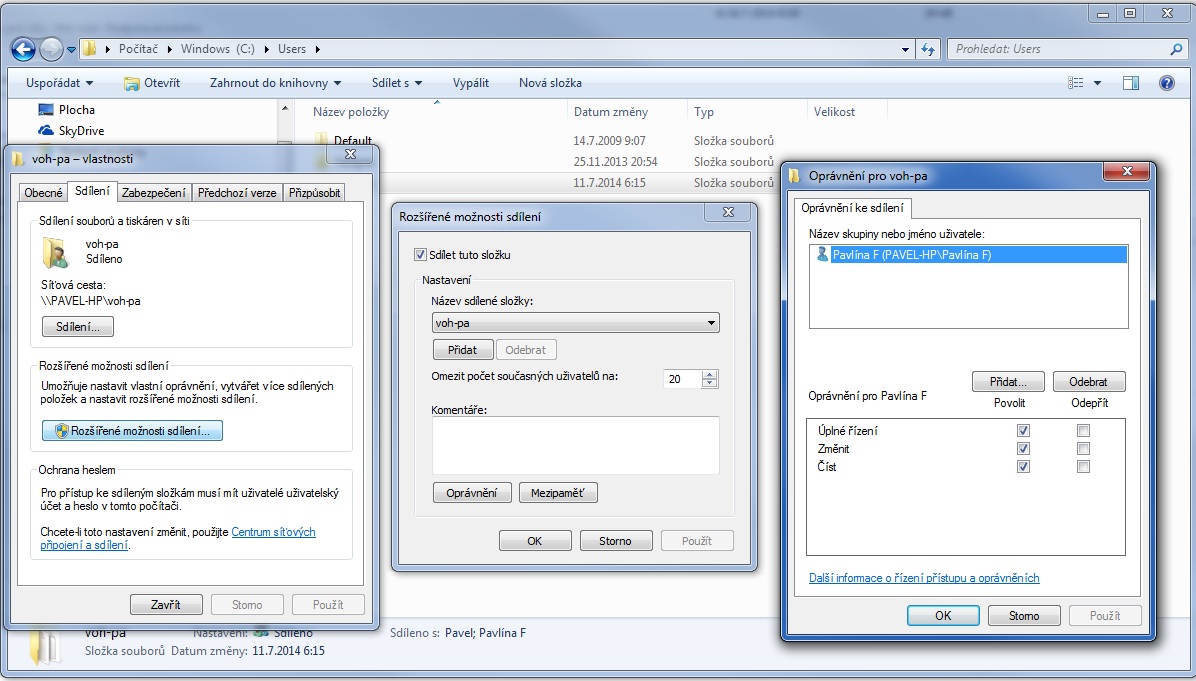 Sdílení souborů s konkrétním uživatelem ve win7