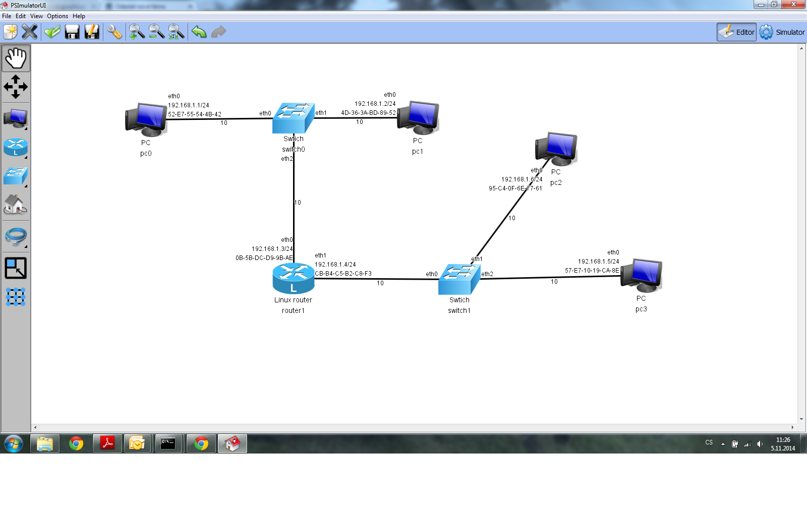 Kdyz jsem si s timhle simulatorem hral naposled tak se tam nedalo nastavit vubec nic krome IP adresy a jestli je rozhrani aktivni. Coz bylo na router hodne malo, protoze to neni router ale managetovatelny switch kdyz routuje vse se vsim.