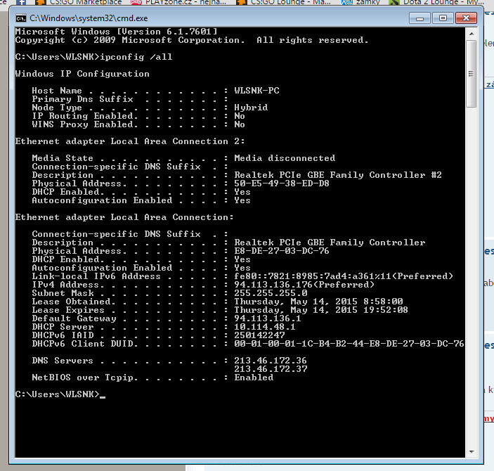 Dej sem screen příkazu ipconfig (do příkazového řádku zadej "ipconfig /all")