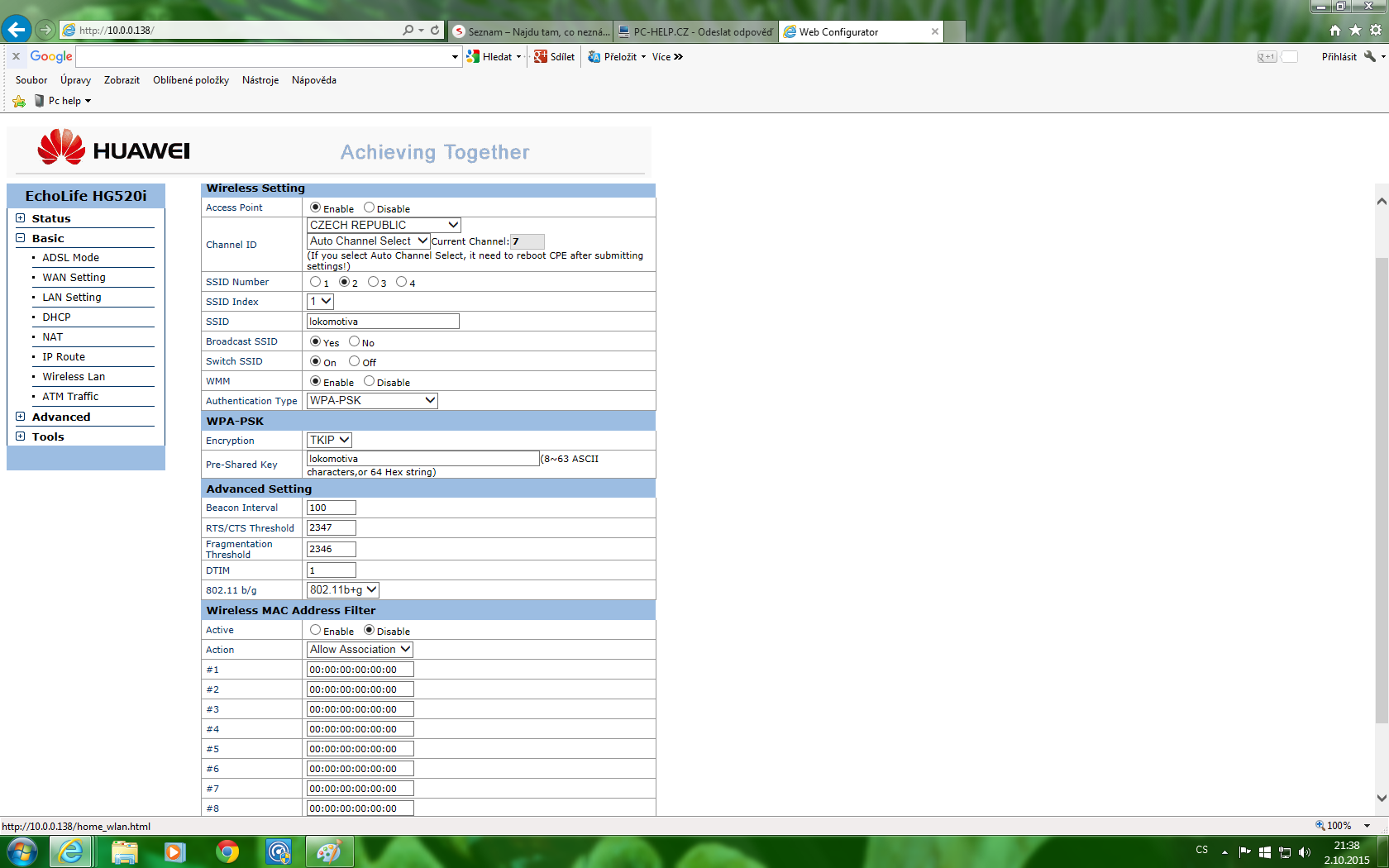PS: Mas v tom solidni gulas a dokud to nedoplnis tak ani nam nepomuze ani vestecka koule. Jinak huawey je adsl MODEM, neni to routr.