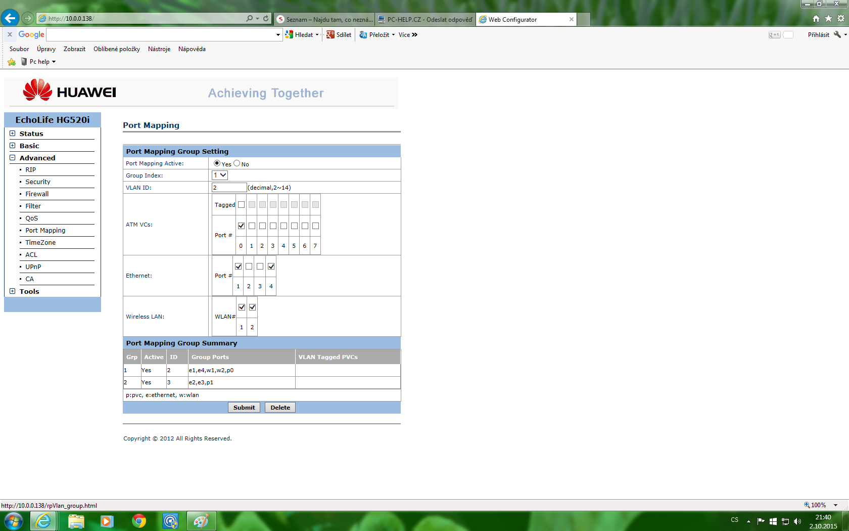 Co pamatuji, tak o2 melo na tomto huawey 2 a 3 lan port nastavene na TV, melo by stacit nastavit je stejne jako je to na 1 a 4. Pokud od nich teda nemas telku. Tot jen k vyuzitelnosti vsech lan na nem.