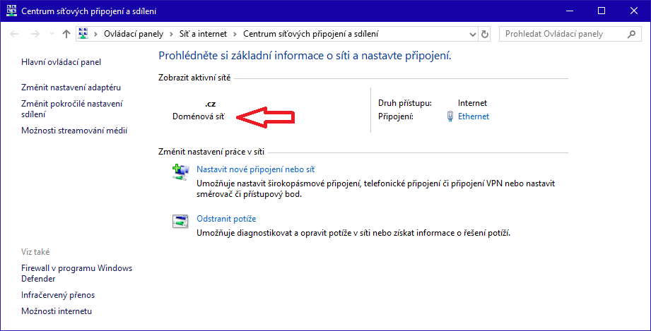 Sdílení souborů a tiskáren je zapnuté z dřívějška.