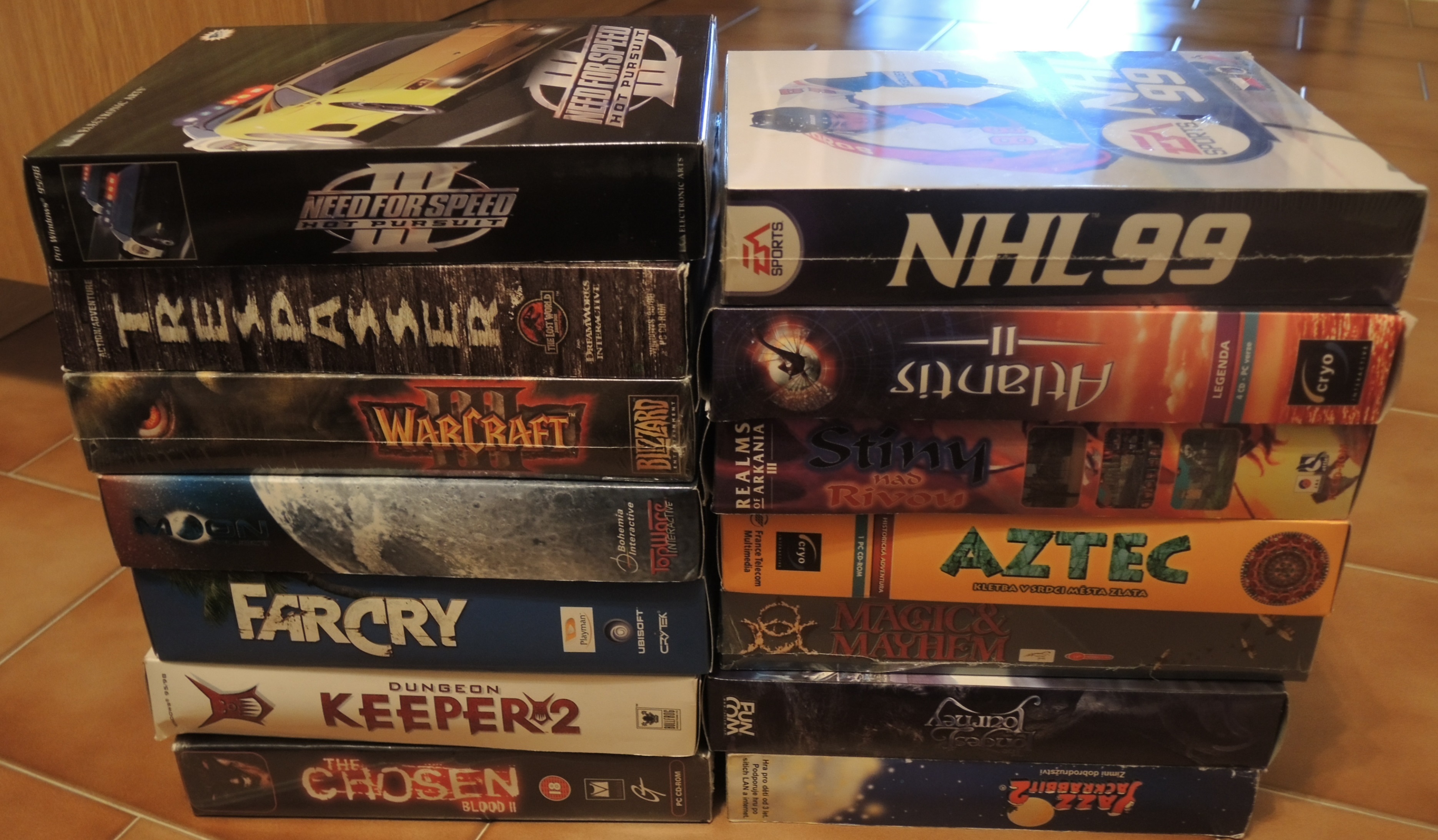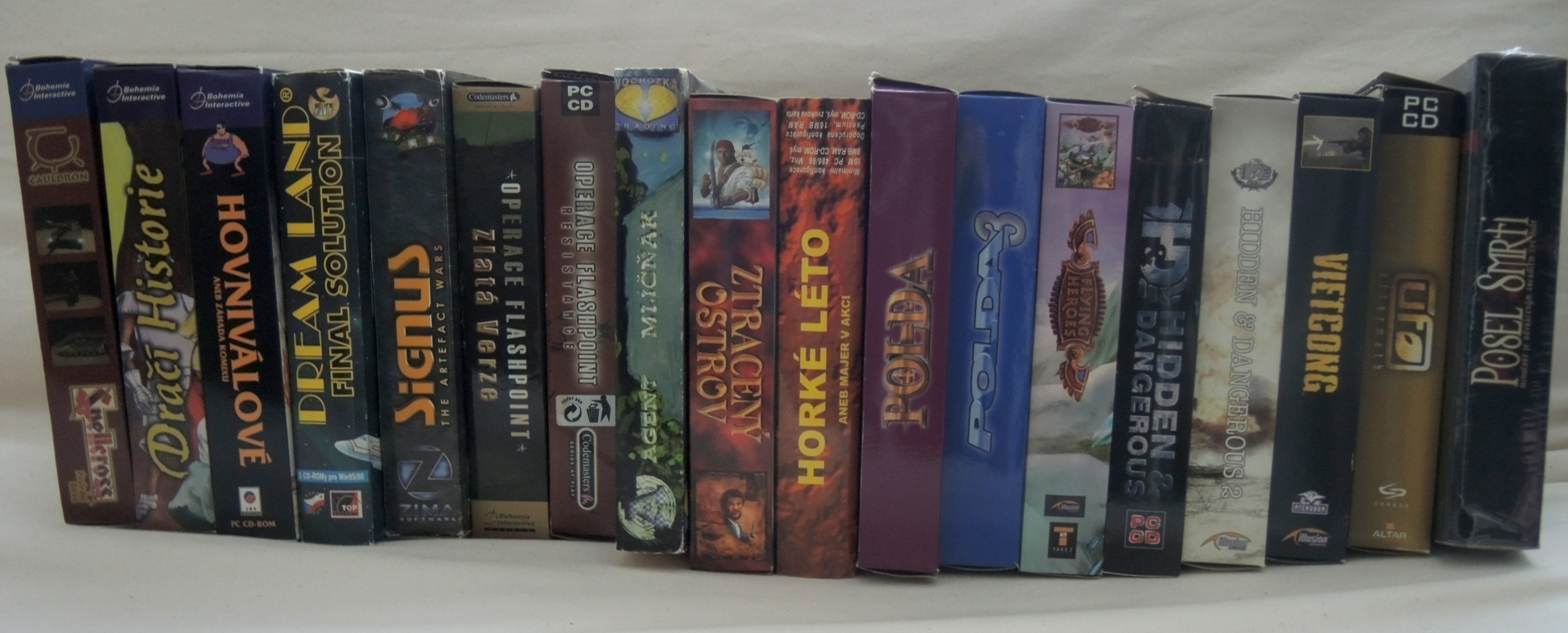 sháním staré originální české hry z období let cca 1990-2005 v původních papírových krabicích či lokalizované verze zahraničních titulů ze stejné doby. Příklady her posílám v příloze, ale jde mi téměř o cokoli z této doby, uvítám jakoukoli nabídku. Nabídky pište prosím sem nebo do SZ.