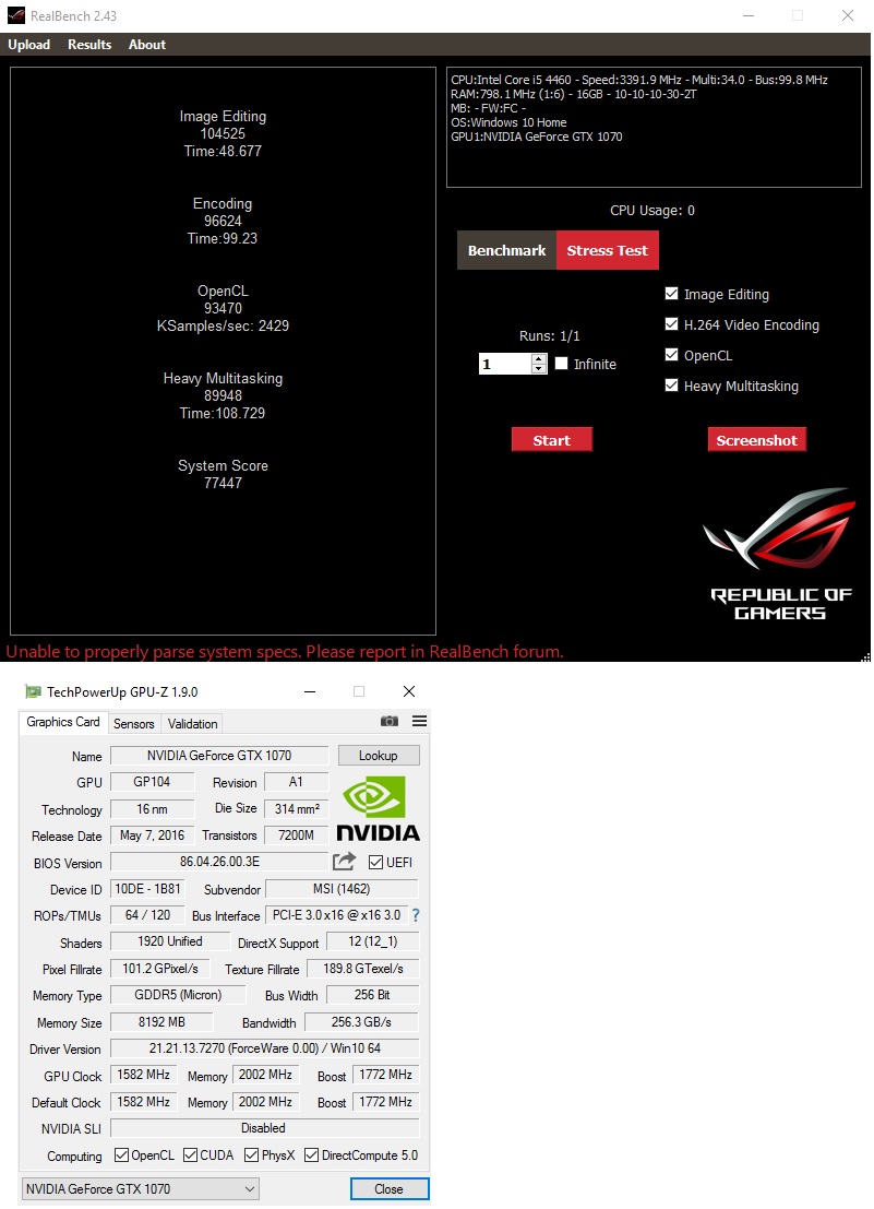 i5-4460 + MSi GTX 1070
