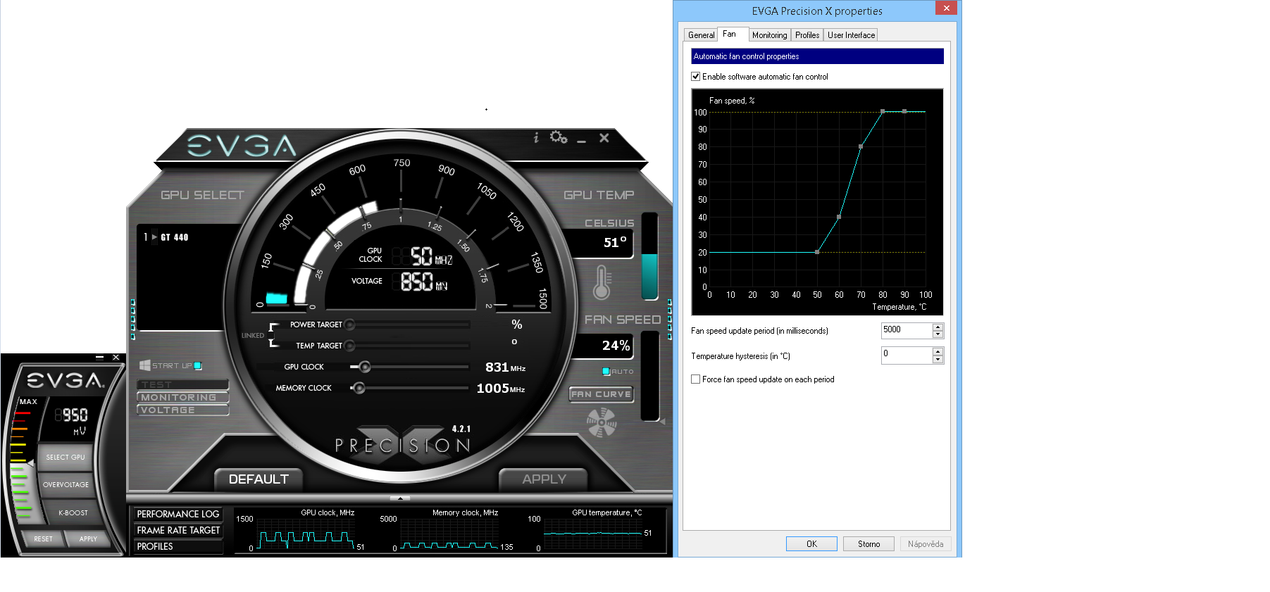 Tak sice nevim jestli je lepsi memory clock nebo gpu clock, ale udelal jsem to, tak jak mi to prislo asi nejlepsi. Jen presne nevim k cemu je voltage, vim ze k tomu, kolik muze byt max gpu clock, ale dal presne nevim.