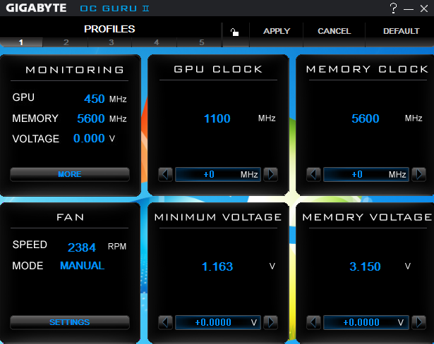 Ani tohle nepomohlo. Každopádně v aplikaci kterou dodává přímo Gigabyte (OC Guru) napětí zvýšit jde.