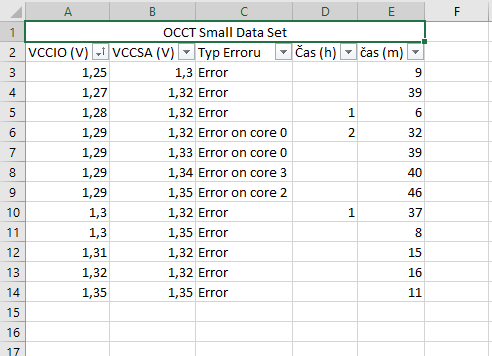 Má OCCT tak moc stabilní výsledky, že nalezne error vždy po cca stejně dlouhé době? Protože mně se více osvědčil opačný postup - nastavit neúplně stabilní nastavení RAM (abych nedostával výsledky na úrovni chyby měření), nechat stress test běžet vždy po stejnou dobu a zaznamenávat počet chyb. Přišlo mi, že tak vzniká menší statistická odchylka.