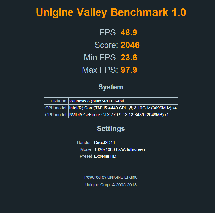 Re: Změřte výkon s ostatními v Unigine Valley 1.0