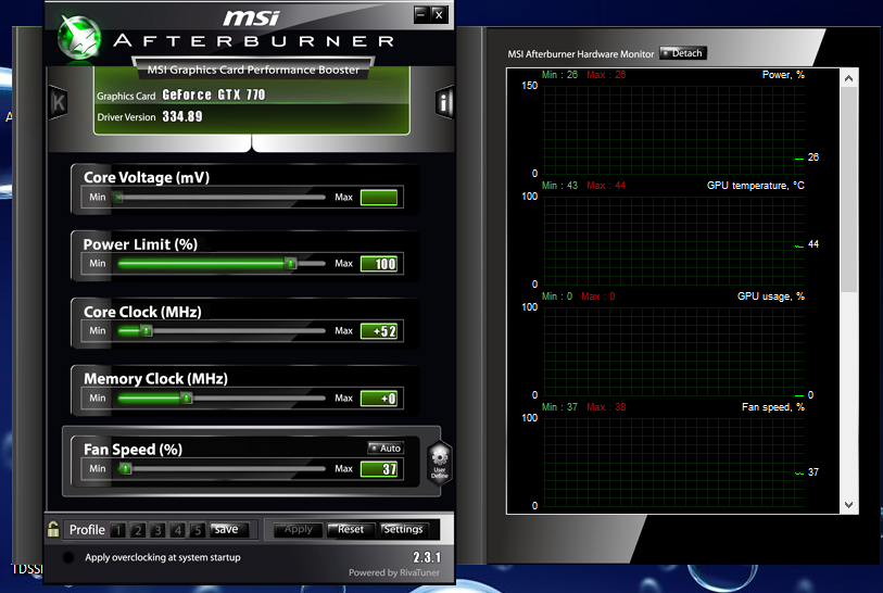 Klaňte se před mojí referenční GTX 760 :D Ve hrách jádro zvládá 1303 MHz, v UV 1.0 1280 MHz. Paměti běží na 7 GHz (Hynix)