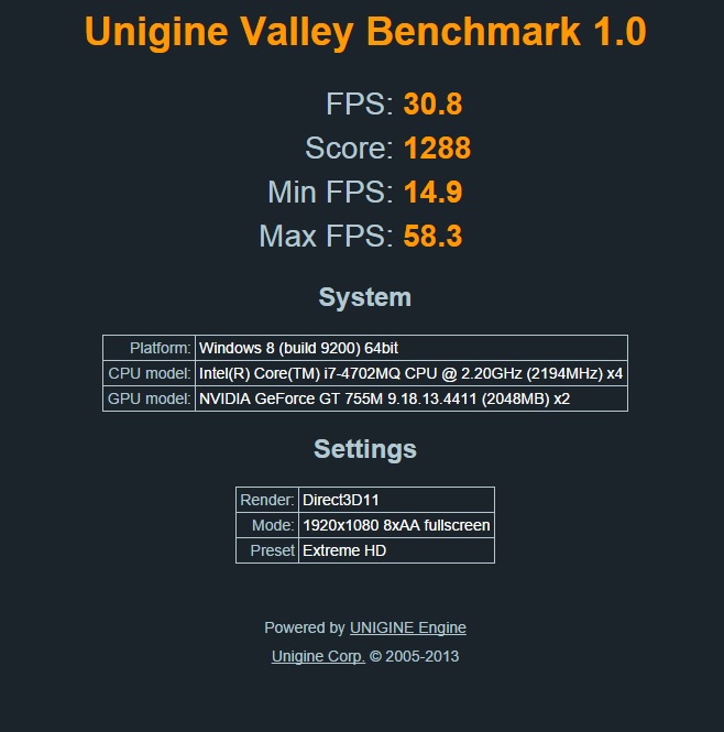 Re: Změřte výkon s ostatními v Unigine Valley 1.0