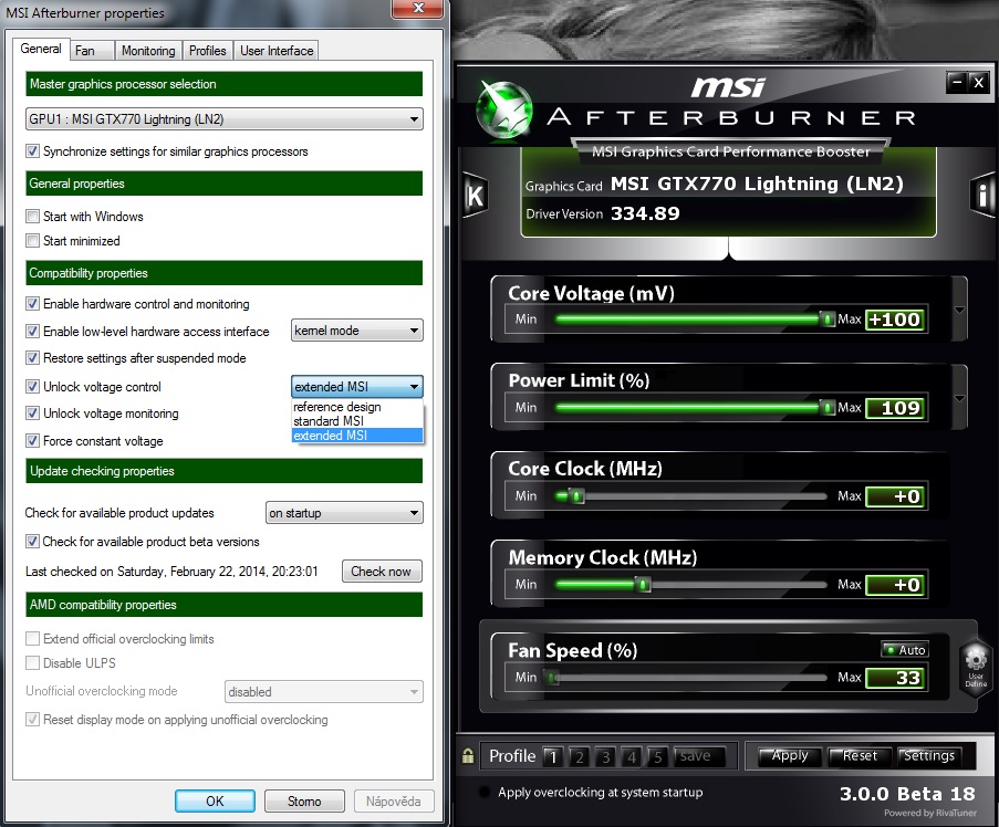 Extended MSI ti dovolí zvednout napětí na jádře +100 na pamětech taky +100 a Aux +50....