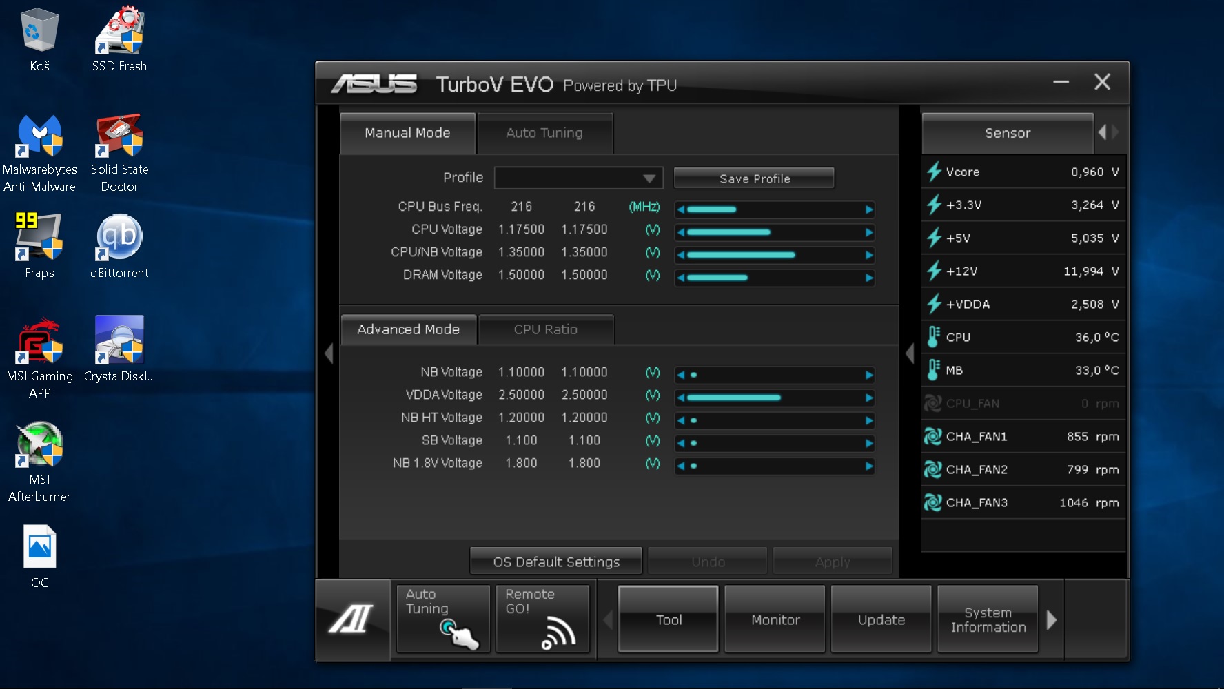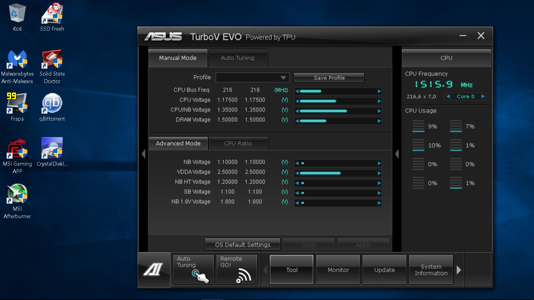 Chtěl bych si nataktovat procesor na nějaký stabliní hodnouty.