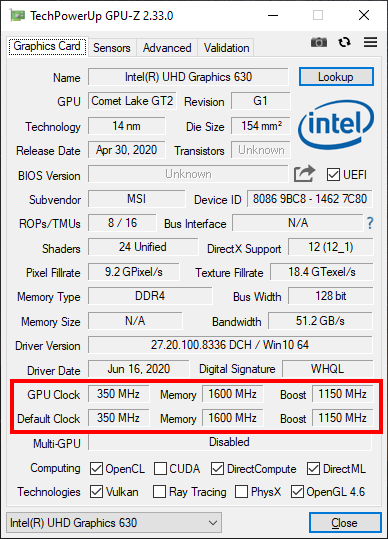 Pokud chceš jasně vidět, jestli máš grafickou kartu přetaktovanou, nebo ne, je nejlepší GPU-Z a první informační záložka (viz. obr.) Pokud se hodnoty umístěné pod sebou v jednotlivých sloupečcích shodují (jako na obrázku), je karta v základním nastavení od výrobce.