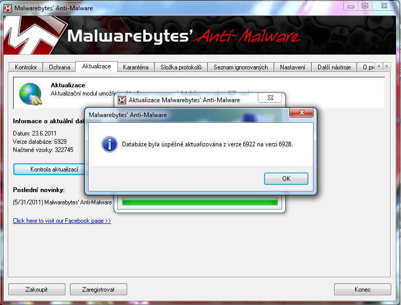 Tak jsem to stáhl a nainstaloval - moc to tedy neudržují :lol: databáze stará 48 dní, tedy o 23 dní více a počet načtených vzorků samozřejmě menší. :evil: