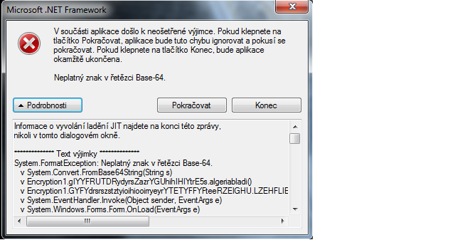 System.FormatException: Neplatný znak v řetězci Base-64.