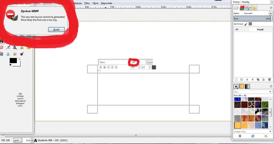 Chci do obrázku něco napsat ale nemůžu jelikož mi to furt píše že velikost písma je moc velká. Ale 18 je úplně malé nevíš co s tím???