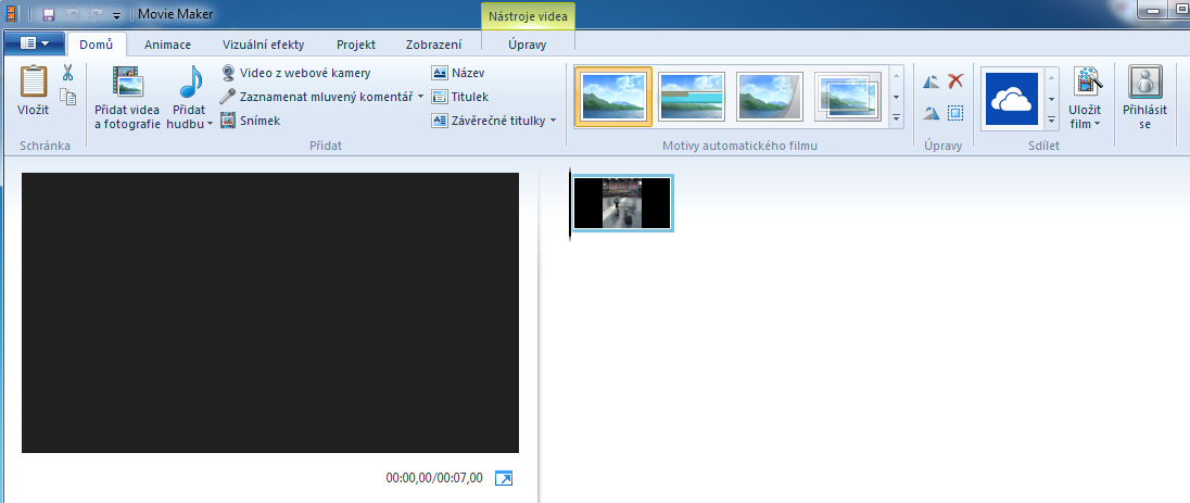 když přidám do MovieMakeru nějakou fotku a chci přehrát (vlevo) video s fotkou, zobrazí se mi pouze černá obrazovka, program někdy spadne.