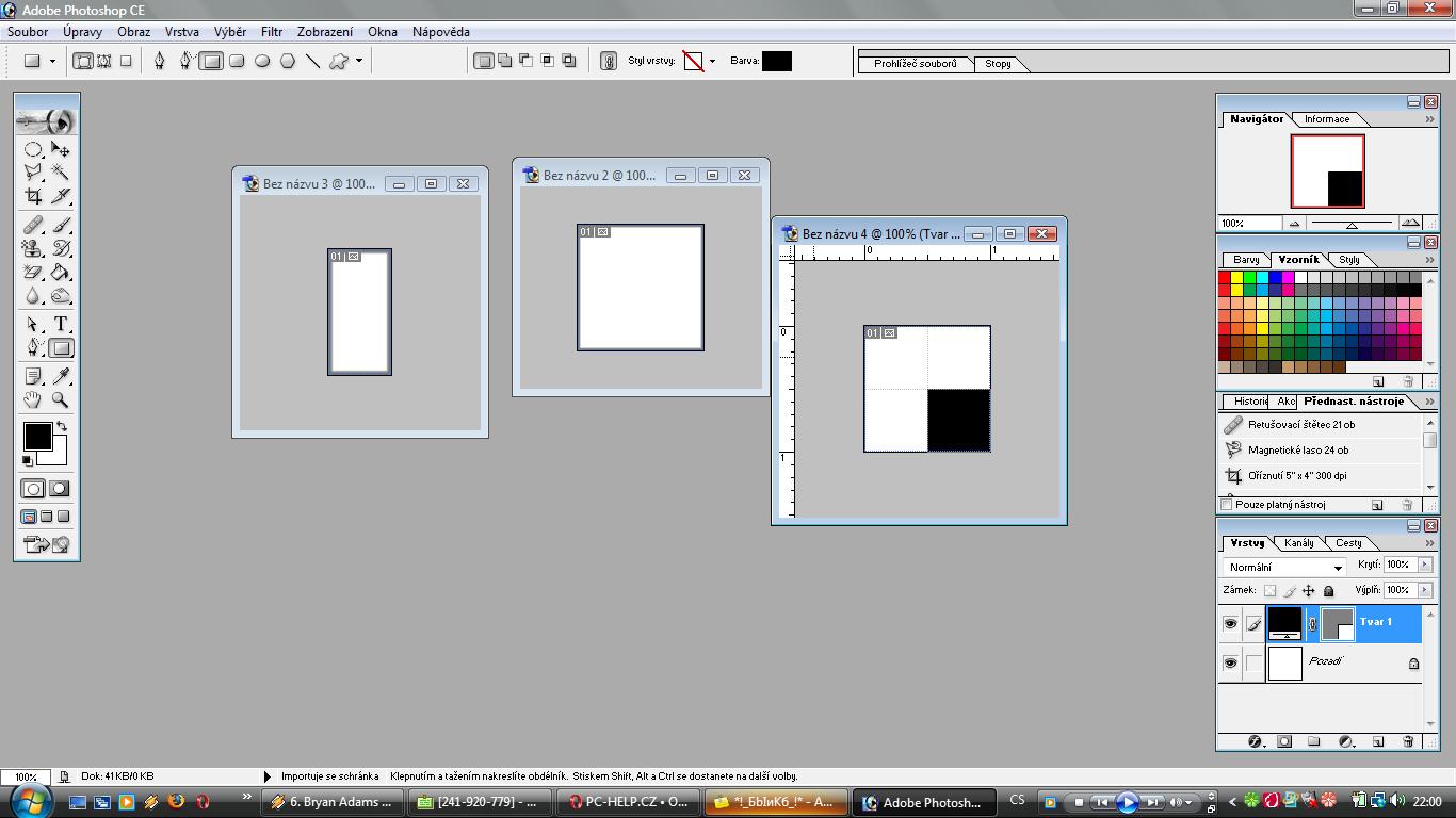 3. z palety nástrojů vyber čtvercový výběr a v pravém horním rohu udělej obdélník tak, aby ti po jeho vymazání zůstalo plátno ve tvaru L