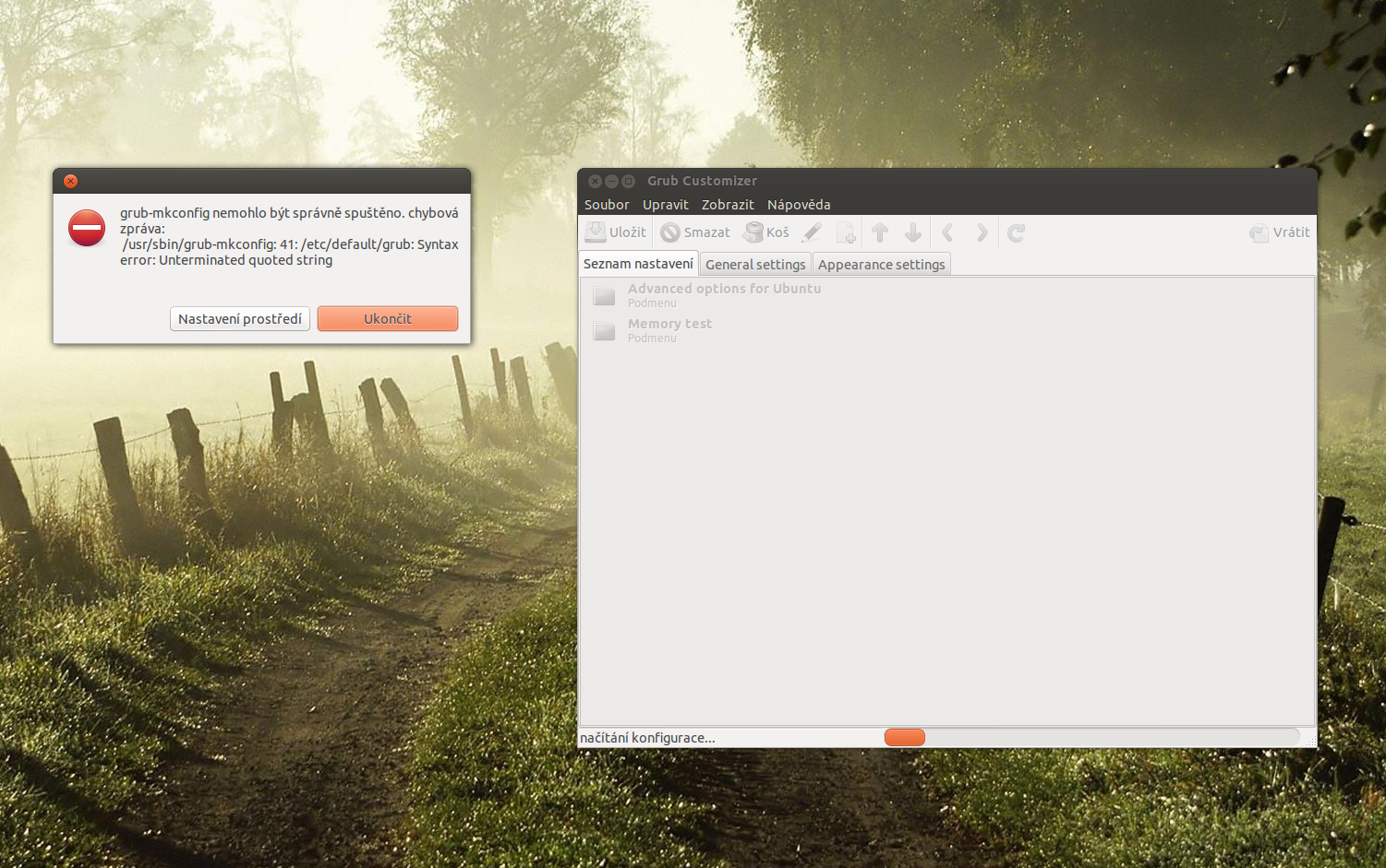 Povedlo se mi včera spustit grub customizer. Po neúspěšném spouštění jsem nechal pc ještě asi hodinu jet a grub customizer se po tom čase spustil. Když ho chci ale spustit dnes a počkám si tu hodinku, nastane chyba viz. příloha.