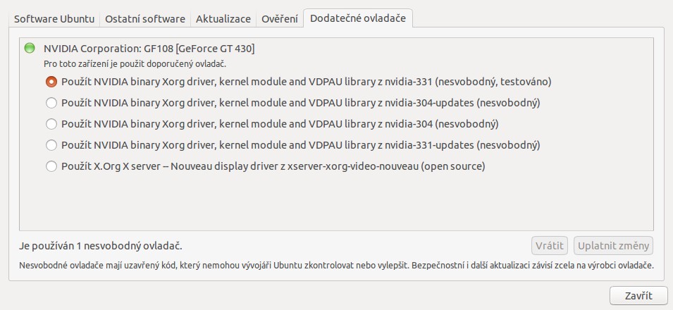 Kdyby to po restartu nenabehlo, tak bude mozna treba zakazat open source Nvidia ovladac Nouveau, ale to uz bude trosku slozitejsi. V nekterych pripadech ten Nvidia ovladac nema rad kdyz bezi zaroven Nouveau.