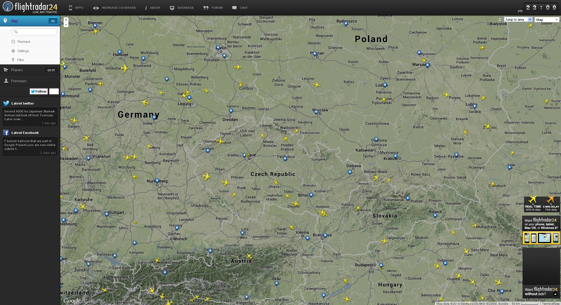 Obrázek Letadla on-line / Flight Radar 24 (anglicky) >>> http://www.flightradar24.com/#50.35,15.5/7?&_suid=139380160689104550097919244076
