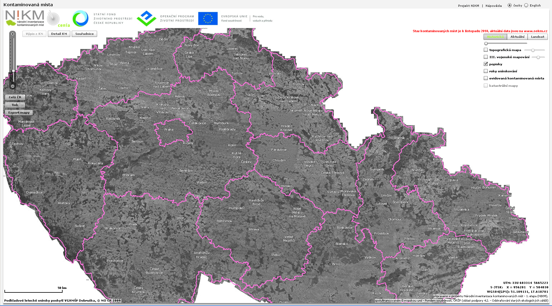 Obrázek Historická ortomapa ČR (1950-1960) + kontaminace (česky) >>> http://kontaminace.cenia.cz/