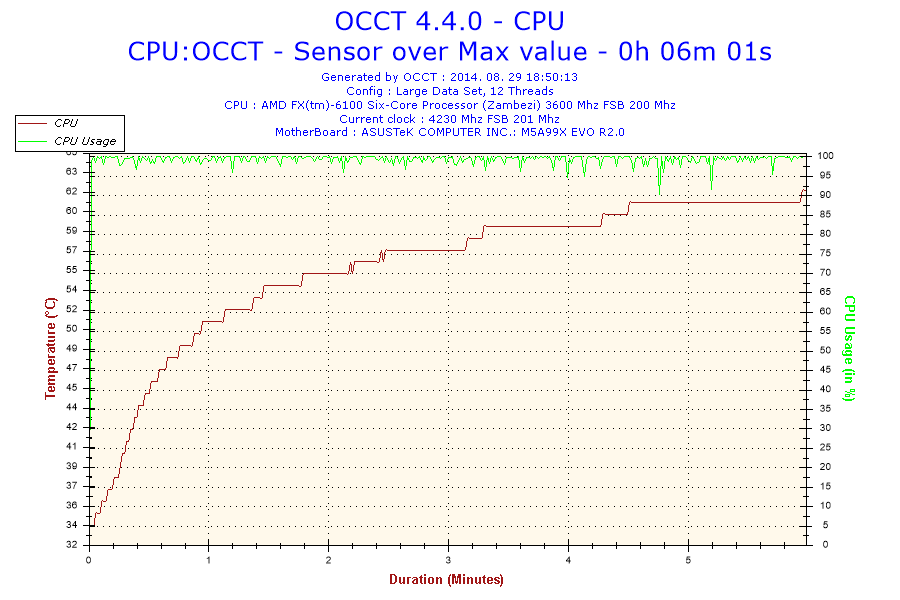 Chlazení je tím pádem postavené takto, ale nechápu teploty.. (všimněte si že test ukončen po 6min.)