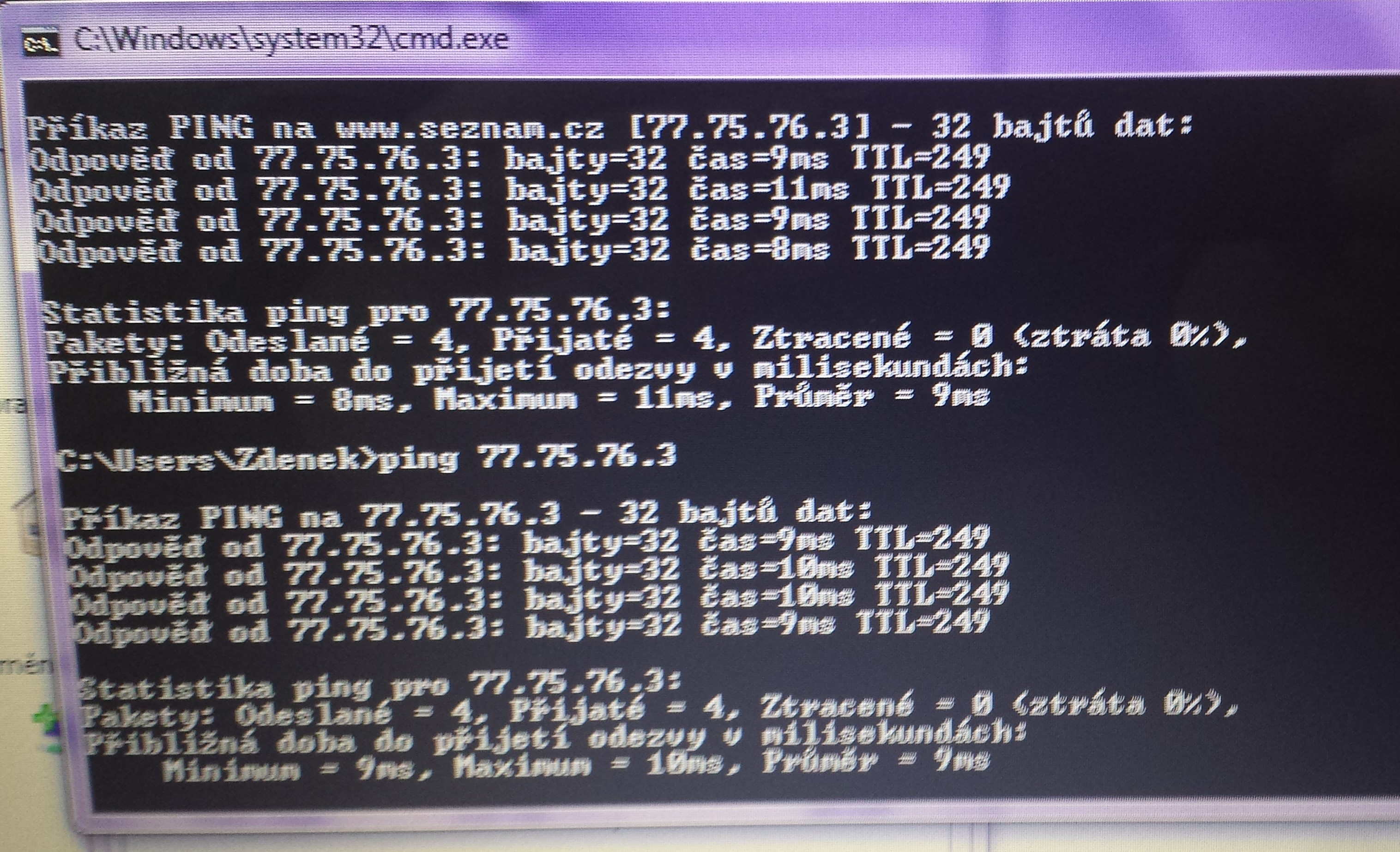 Před několika dny přestalo fungovat připojení k wifi. Počítač ukazuje, že je připojen k dané síti, v Centru sítových připojení a sdílení je také ukázáno, že je připojen a když otevřu cmd a pošlu ping třeba na http://www.seznam.cz nebo i jako ping 77.75.76.3, tak dostanu normálně odpověď během 9ms a mám 0% ztrátu paketů.