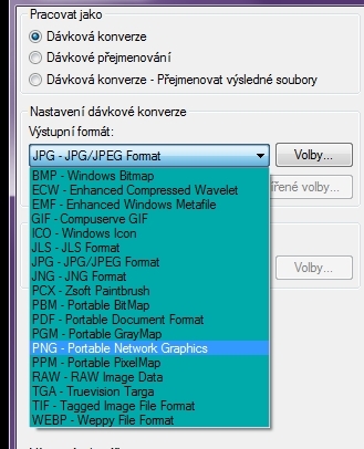 Taky musíš vybrat výstupní formát, standard je jpg.