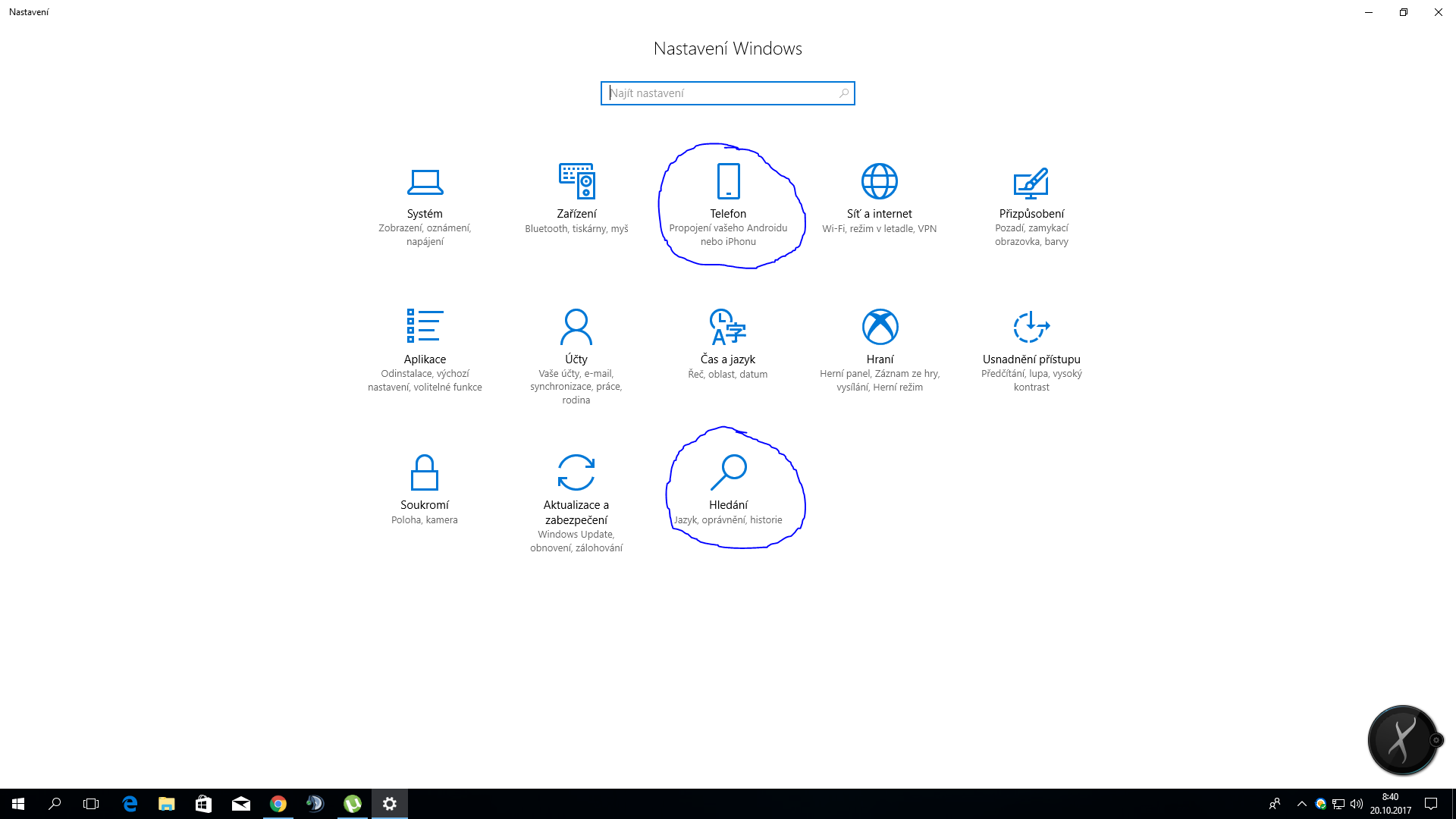 Nově nastavení hledáni již není v hledání. když kliknete na ozubené kolečko v hledání hodí vás to do nastavení. Jelikož to přemístili do nastavení takže další změna.. Opět viz obrázek