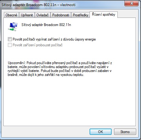 Jeste se podivej na nastaveni napajeni toho adapteru (ve Spravci zarizeni i v Moznostech napajeni), zda nejsou zapnute nejake setrici funkce.