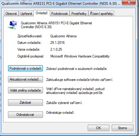 Popis . . . . . . . . . . . . . . : Atheros AR8151 PCI-E Gigabit Ethernet Con