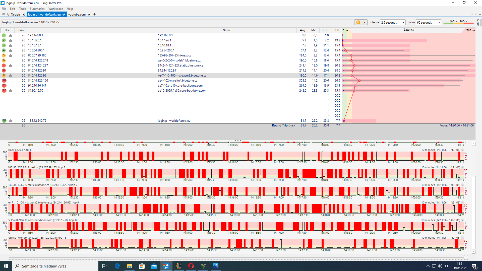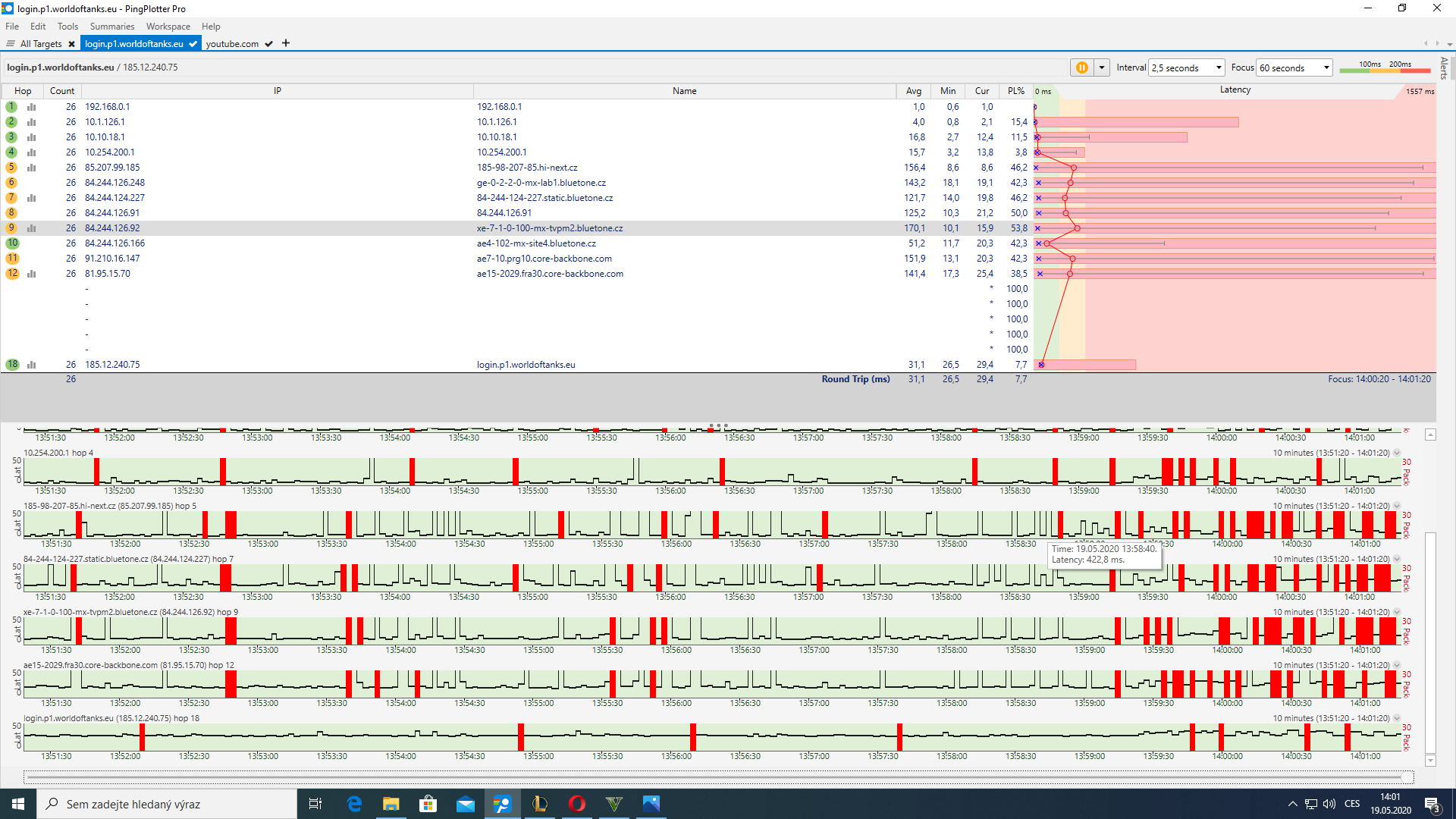 Dobře on psal že se přijde podívat ne router takže chyba nebude asi v routeru co ? protože jinak by to ráno nešlo v pohodě. Ted na 1 zařízení stahuji GTA V a pingplotter vypadá takto.