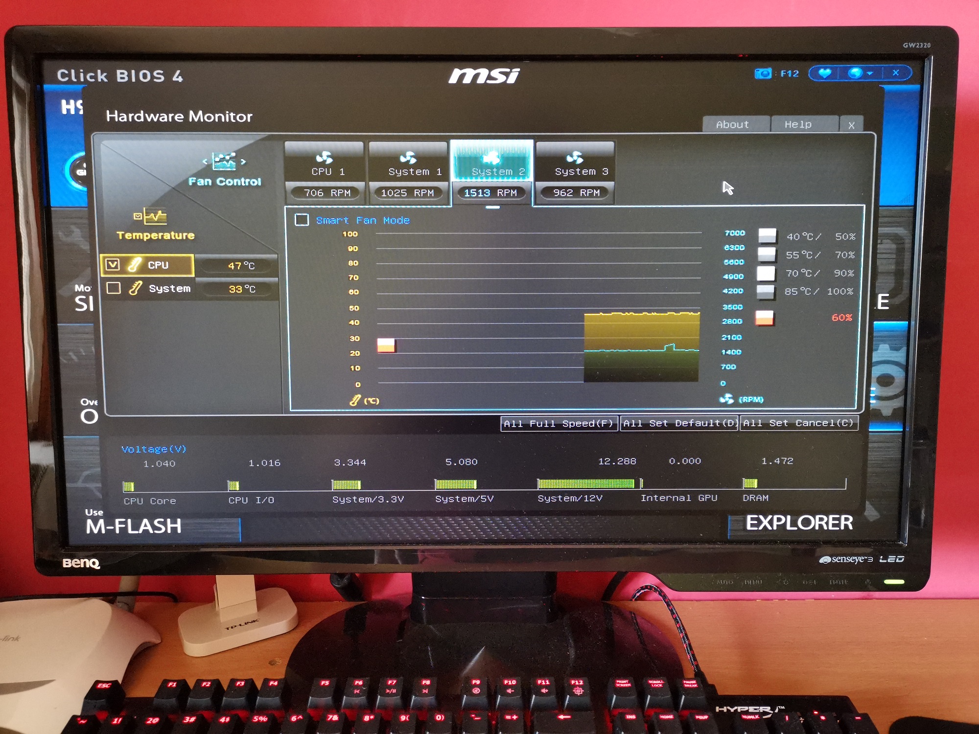 Tak jsem zkusila teda ten BIOS, našla jsem tam i fan control, ale vůbec nevím, jak by to mělo být správně nastavené. Tak jsem tam zatím hodila všude maximální otáčky, tím, že to bude foukat víc, se nic nezkazí, než mi poradíte jak na to.