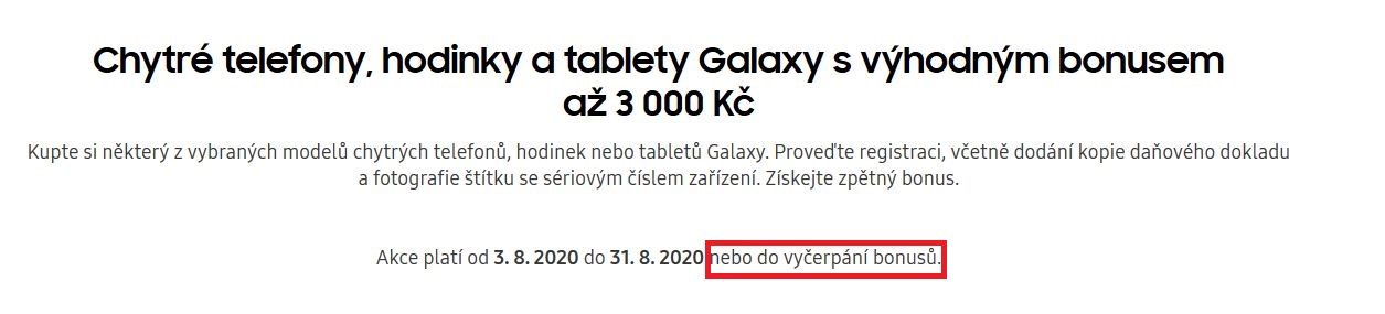 tak ještě dodatek : volal jsem ted na Samsung, oni ale samozřejmě neřeknou, jestli už jsou ty registrace vyčerpané. takže mi bylo doporučeno, abych případně ten telefon zakoupil na nějakém shopu, kde to budu moci případně vrátit v té 14 denné lhůtě. Protože po té registraci by měl udajně přijít email, kde mi bude ta registrace potvrzena a nebo mi bude sděleno, že už je limit vyčerpaný a já pak mohu případně ten telefon vrátit. Jiné řešení prý není..