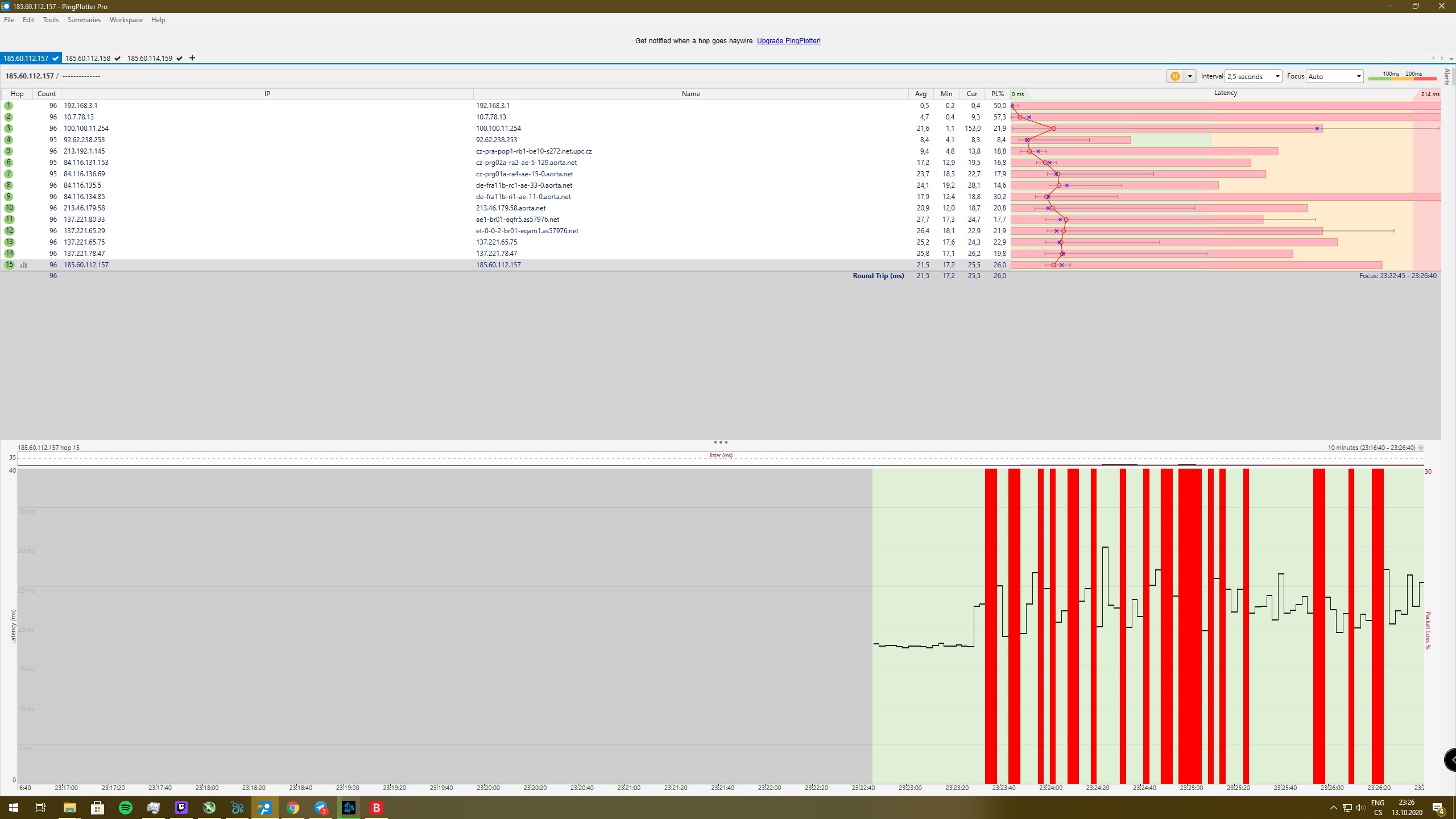 Pak je možné, že ty pakety jsou zahazovány. Dej sem screen z pingplotter, třeba něco ukáže.