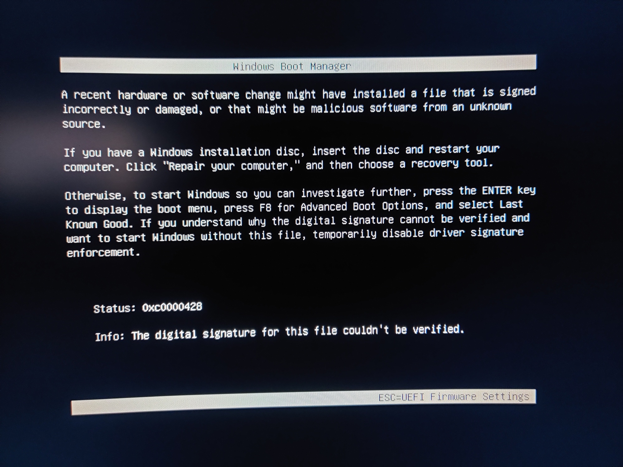 The digital signature for this file couldnt be verified