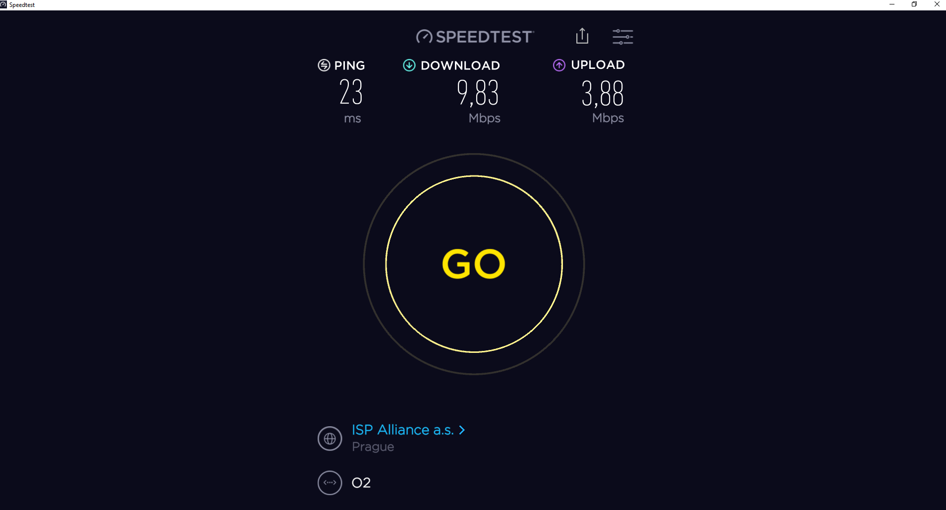 - rychlost internetu dle smlouvy + výsledek testu ze speedtest.net