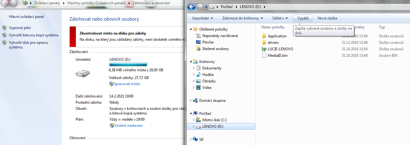 disk D - přístupný, nejspíš asi k ukládání záloh, ale proč by zálohy ukládal na stejný disk...
