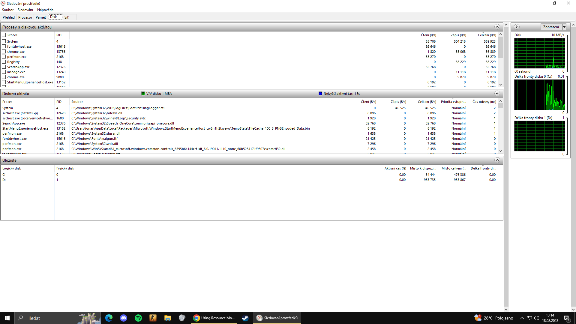 Resource Monitor a Task Manager primo ve Windows by ti to mohly ukazat - neco bude soustavne zapisovat.
