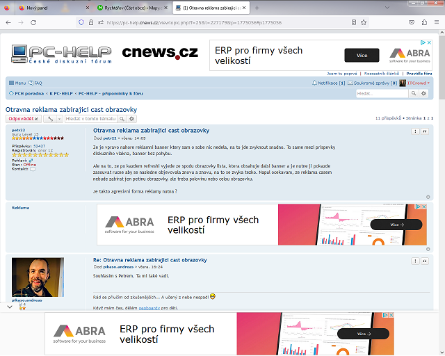 Ze je vpravo nahore reklamni banner ktery sam o sobe nic nedela, na to jde zvyknout snadno. To same mezi prispevky