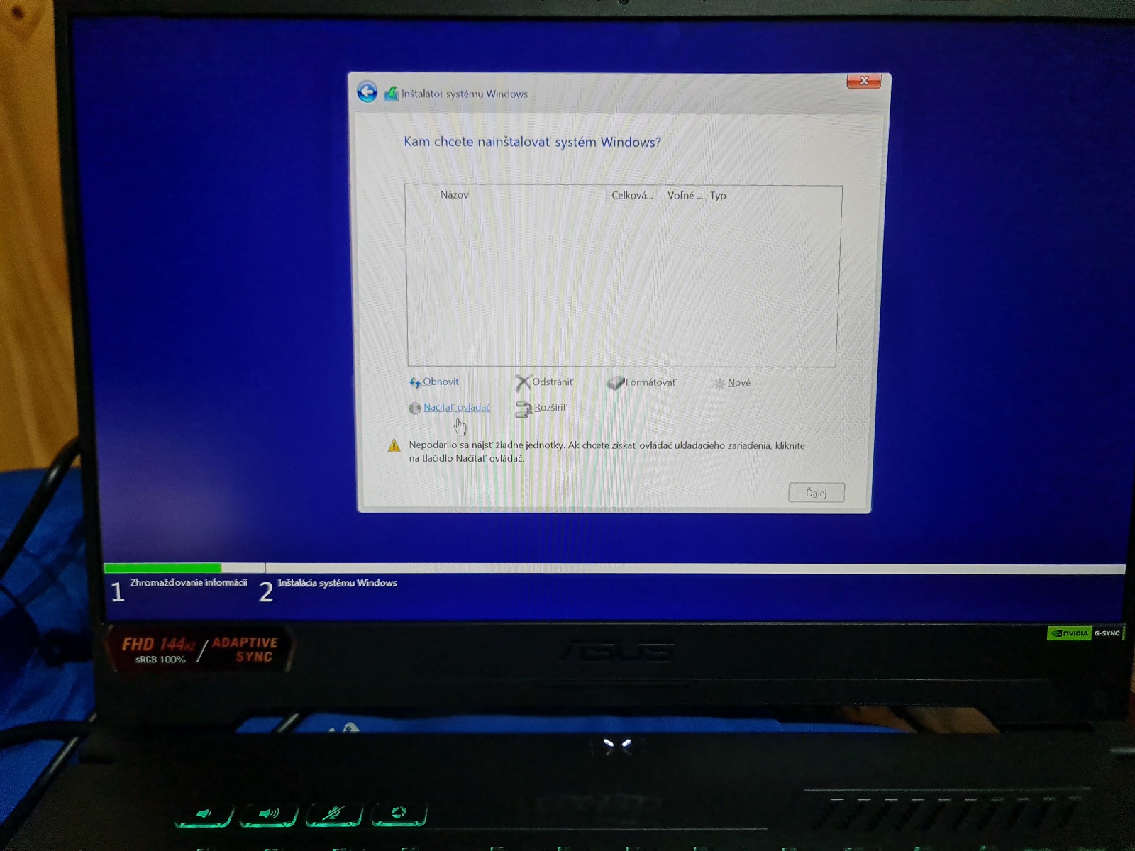 Zas skočí len do obrazovky kde nie je vidieť žiadnu jednotku a zas chce vybrať ovládač.