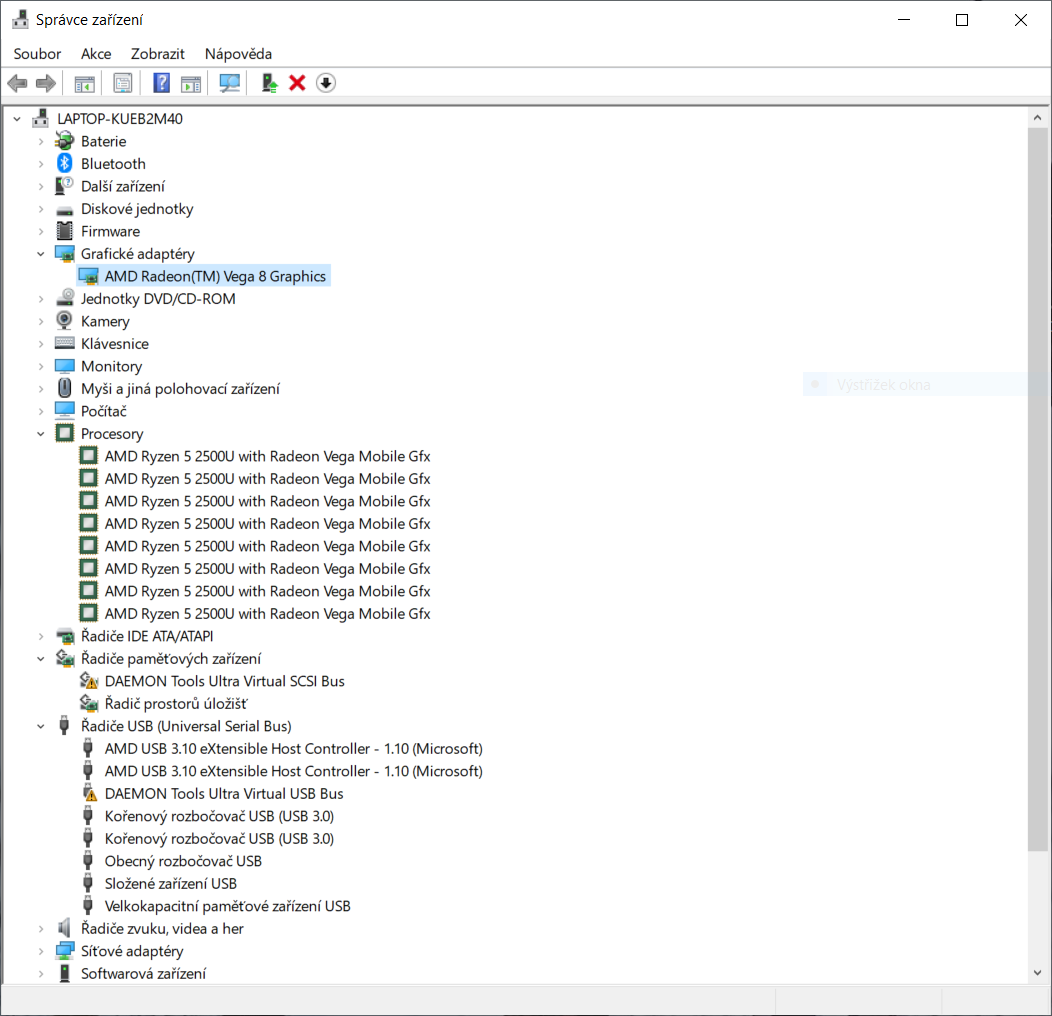 Grafická kartaAMD Radeon™ Vega 8 (integrovaná bez vlastní paměti)